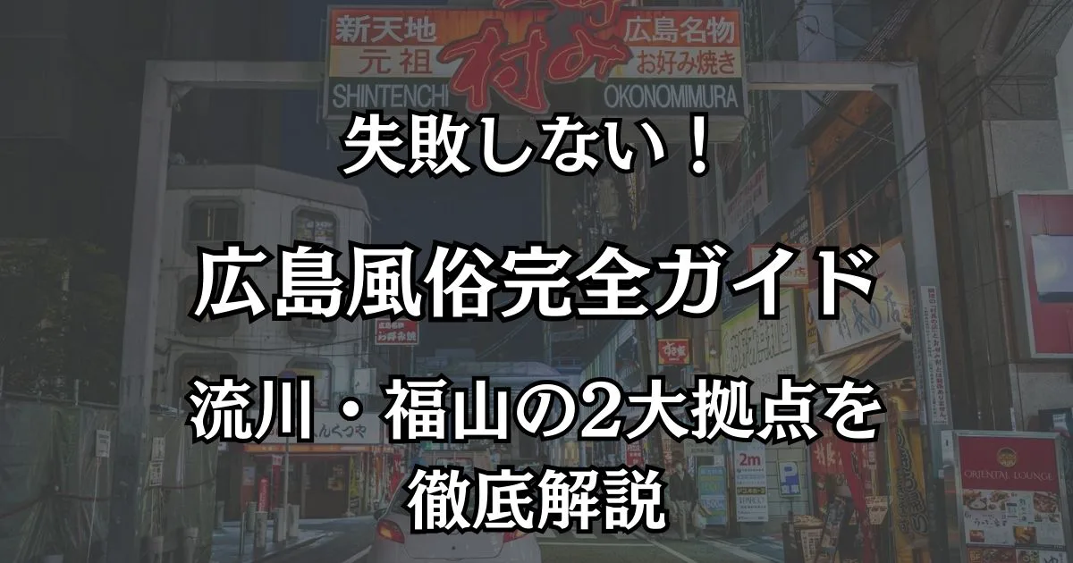 広島の風俗は、圧倒的な店舗数とジャンルの豊富さを誇る絶対的エース「広島市(流川)エリア」と、県東部にお住まいの方や出張者に人気の穴場「福山エリア」の2大拠点が中心です。
